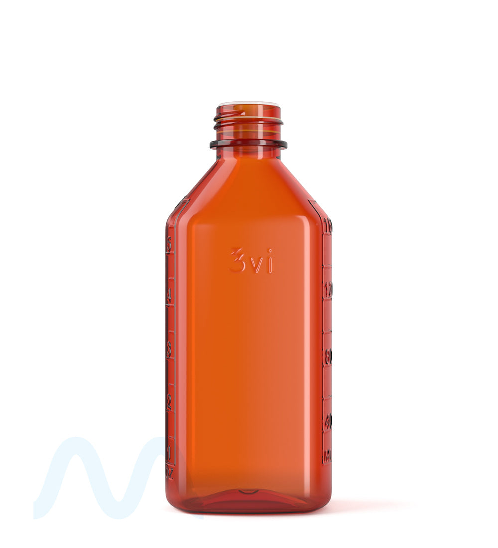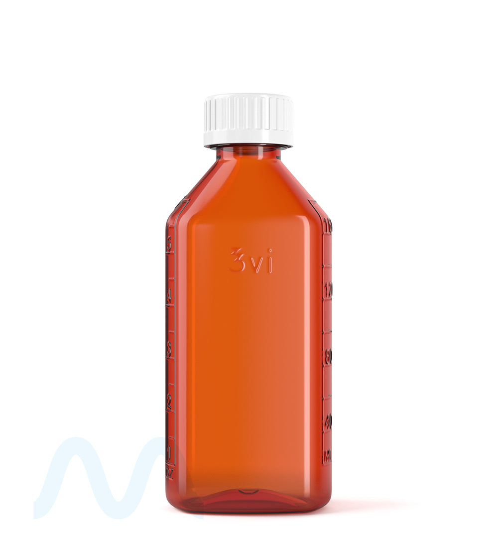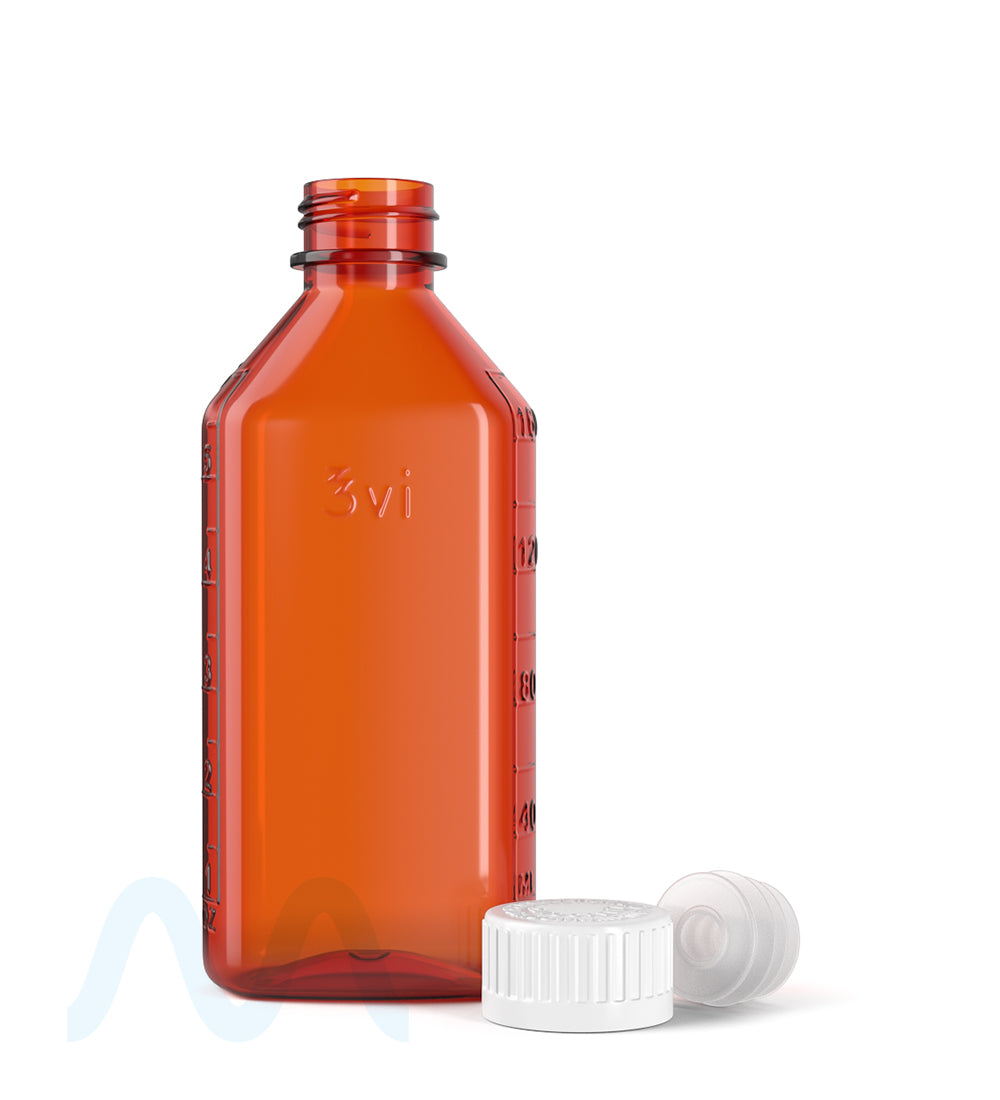 Child Resistant | Push Down & Turn Plastic Syrup Bottles6oz - Amber - 100 Count