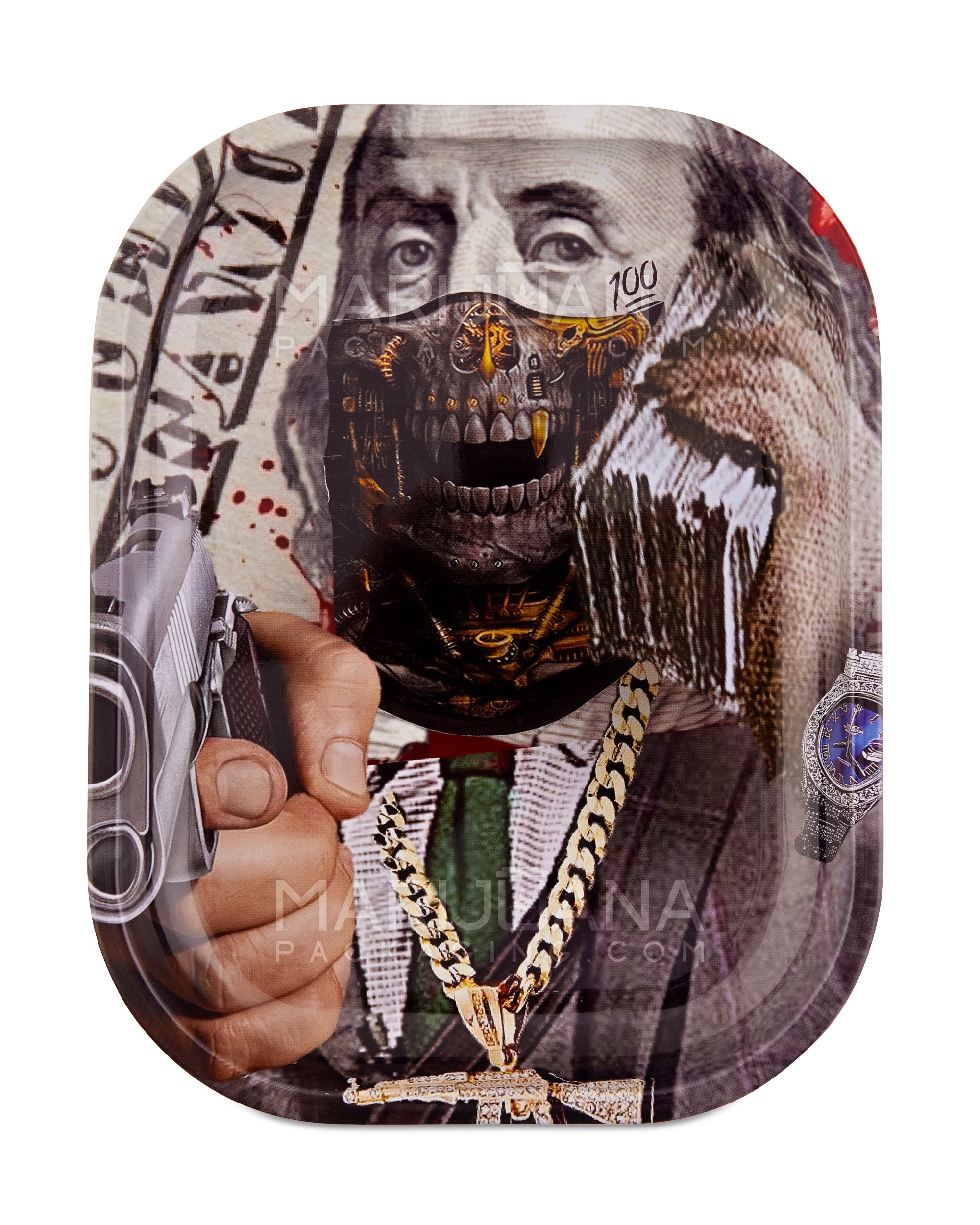 Pistol Rolling Tray w/ Magnetic Cover7in x 5.5in - Mini - Metal