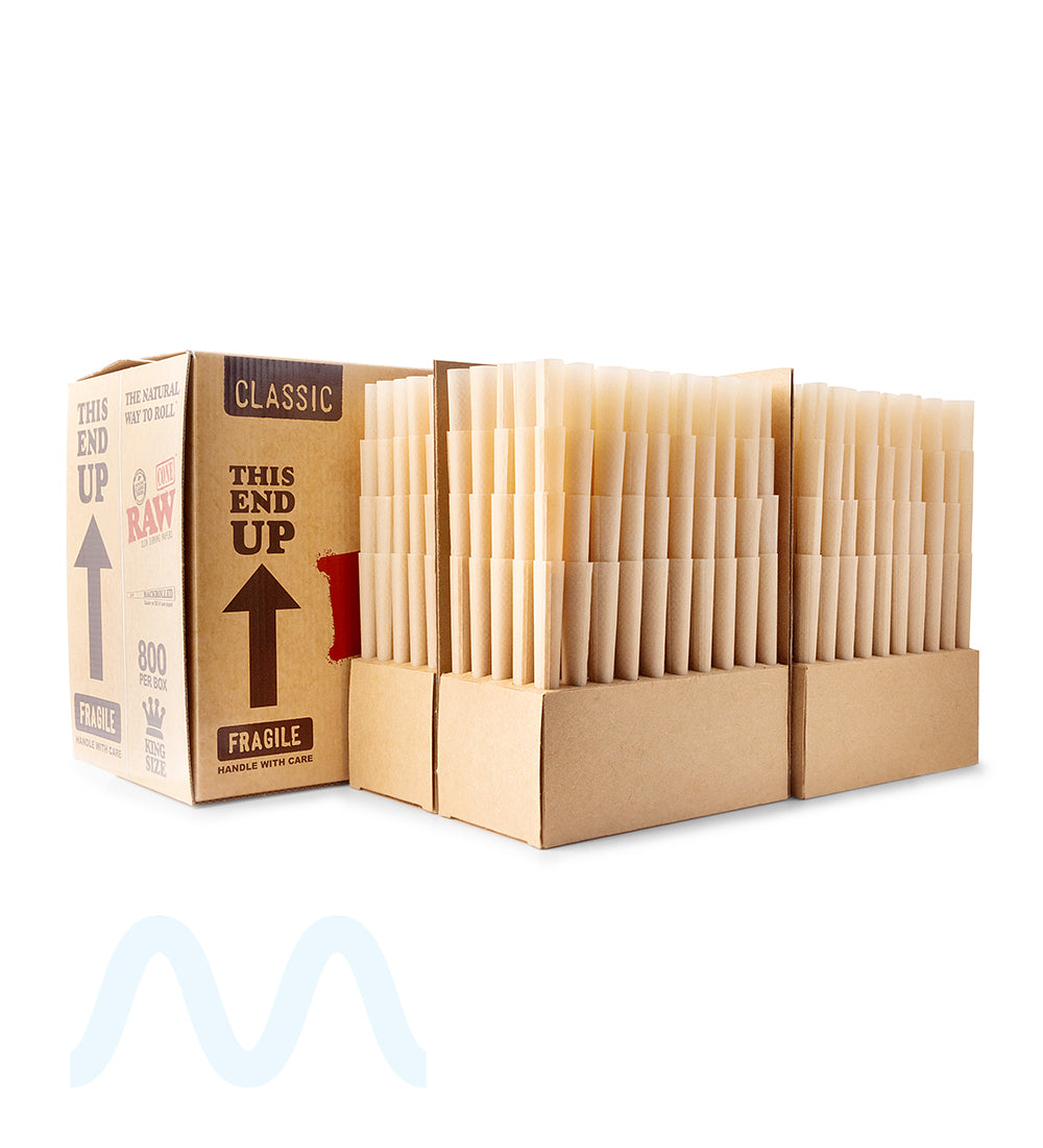 RAW | Classic King Size Pre-Rolled Backrolled Cones109mm - Unbleached Paper - 800 Count