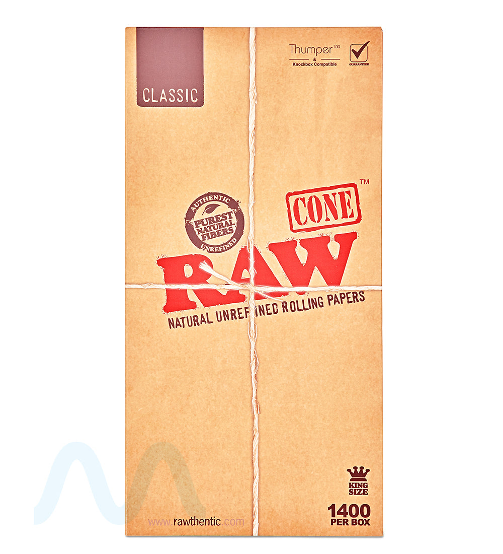 RAW | Classic King Size Pre-Rolled Cones109mm - Unbleached Paper - 1400 Count